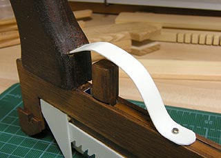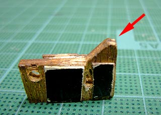 このホールドフックは2001年の大改修で作り直したものですが、プラ板が0.5ミリ厚しかなかったせいか早々に欠けてしまいました。